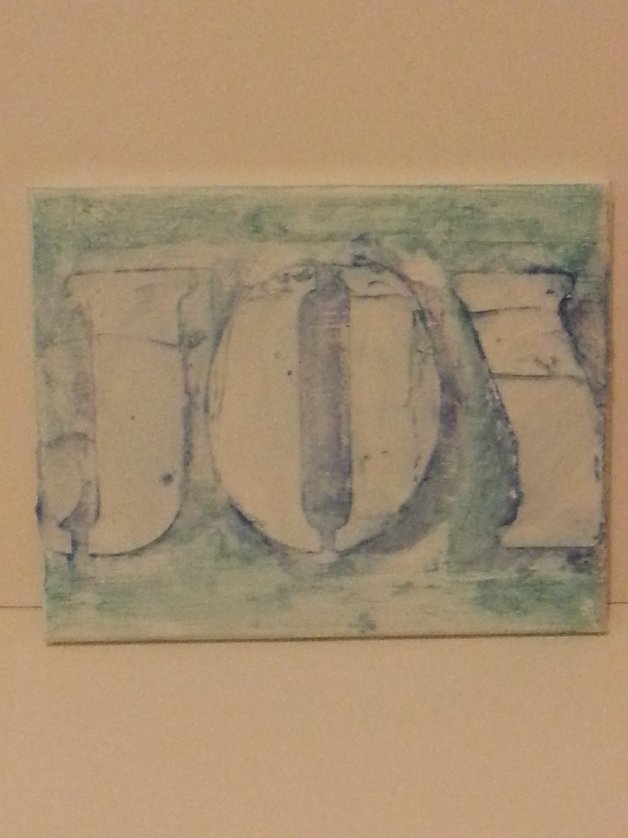 to make as many copies of my word of the year as I get inspired to. This includes collages, paintings, giant letters, and whatever else I feel moved to do. Here is the first one with paint, glaze, gesso and light modeling paste. Stay tuned.
