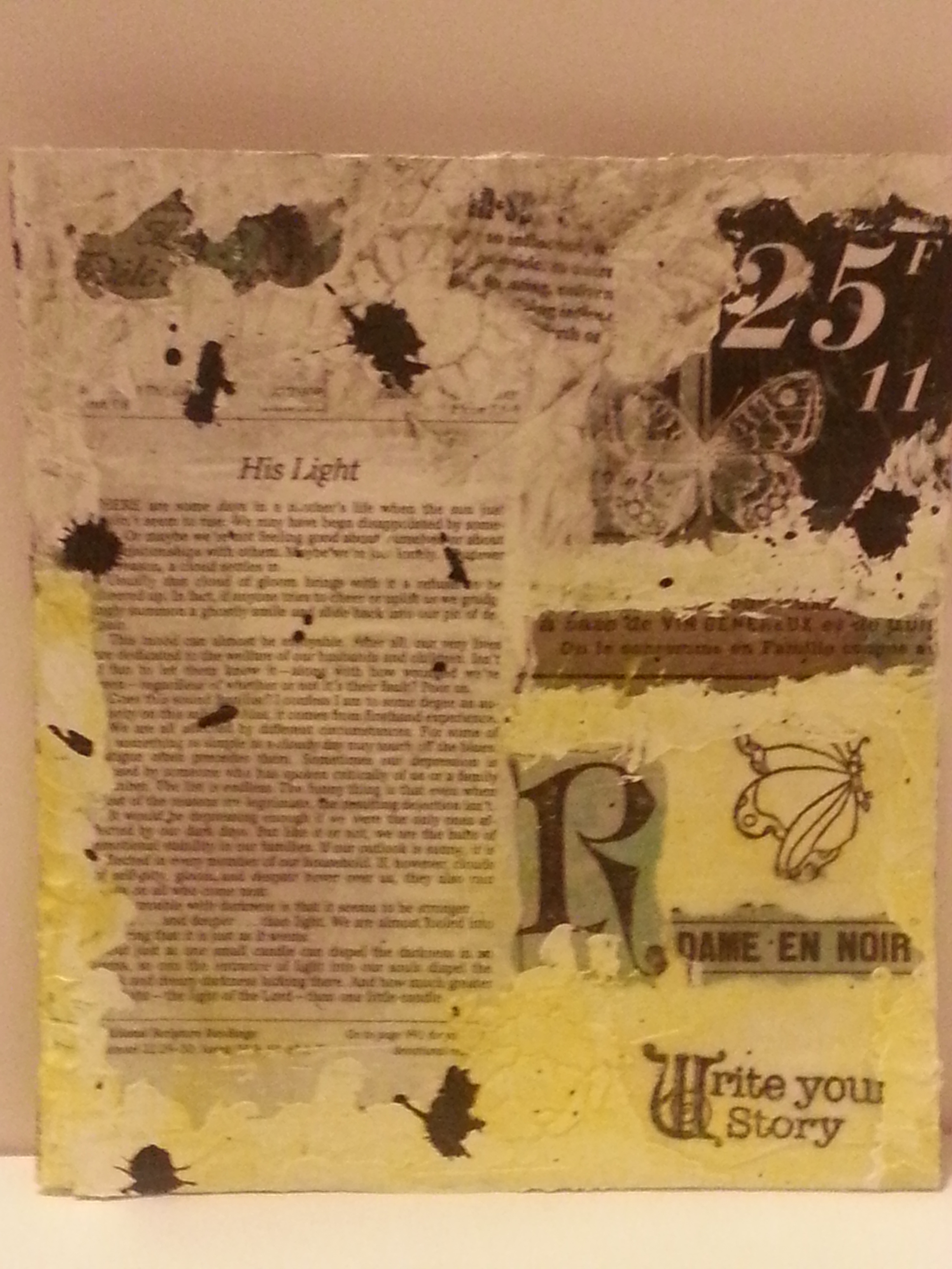 Here is my project with the heavy gesso, a little more glaze, modeling paste and India ink splatters. I enjoyed making them and I am pleased with the results, but I know I will be revisiting this because there are a few pieces I want to try with along with different colors and textures.