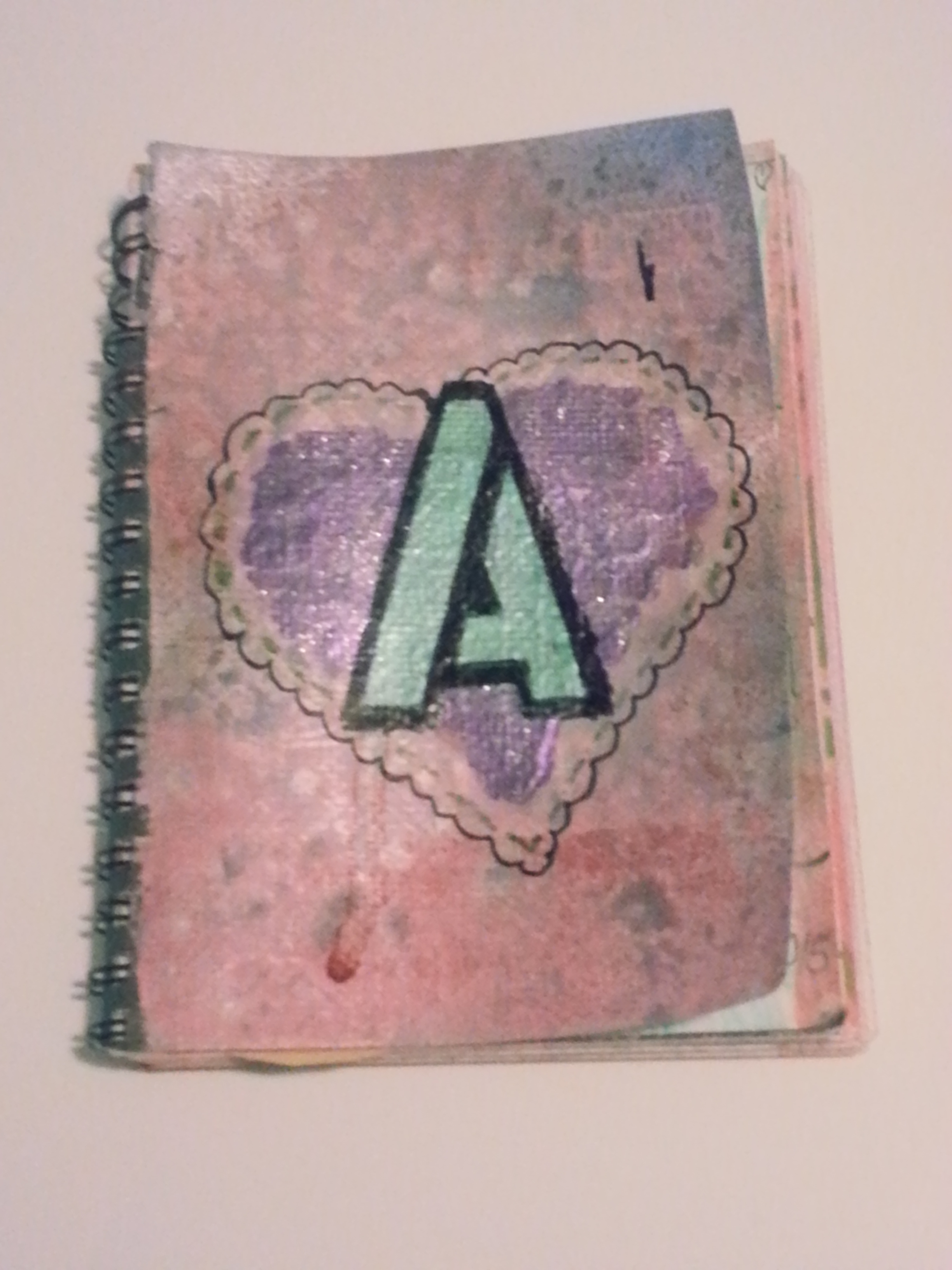 Sometimes I wonder if Miss A’s journal cover is going to stand up to every idea I have. So far, so good. I have caught her peeking at it a couple of times and she likes what she sees, so I am still chugging along. My latest thing is painting, stenciling and making collage of my favorite words into her book. I hope that when she gets older and doubts herself and people try to make her feel small, that she will pull out this book and know how valued and loved she is. I have been thinking about doing something similar for my sons, toughened (and in Nat’s case edgied) up of course.